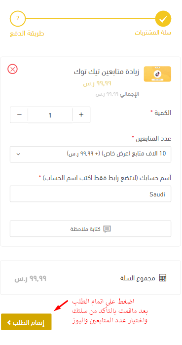 - بعدها كل ماعليك فعله هو الذهاب الى السلة والضغط على "اتمام الطلب"